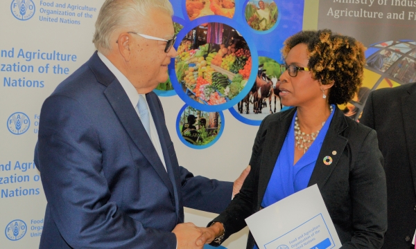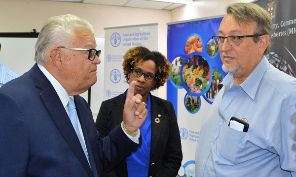 Hon. Karl Samuda (left), Minister of Industry, Commerce, Agriculture and Fisheries, converses with Gillian Smith (centre), Officer-in-Charge, Food and Agriculture Organization (FAO) Representation for Jamaica, the Bahamas and Belize; and Conley Salmon, President, Jamaica Operations, Jamaica Broilers Group, at a media launch for Jamaica’s hosting of the FAO’s 35th Regional Conference for Latin America and the Caribbean. The launch was held at the Ministry’s New Kingston offices on Tuesday, February 13, 2018. The conference is scheduled to be held from March 5-8, 2018, at the Montego Bay...