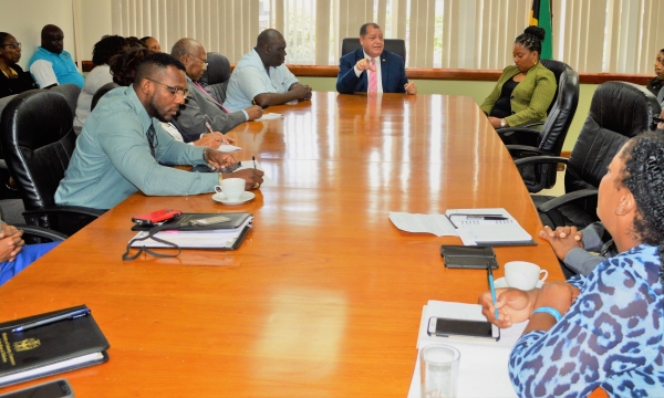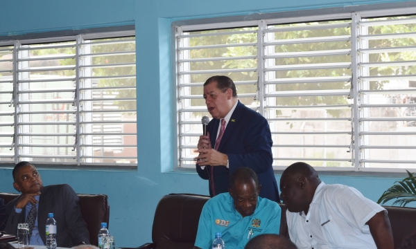 Newly appointed Minister of Industry, Commerce, Agriculture and Fisheries, Hon. Audley Shaw, speaks to staff at the St. Lucia offices of the Ministry, on Wednesday March 28, 2018. Minister Shaw says he is looking forward to working with the Ministry and encourages the staff to be innovative, enterprising, and mobilize an environment that facilitates the private sector which will raise the standards of doing business.