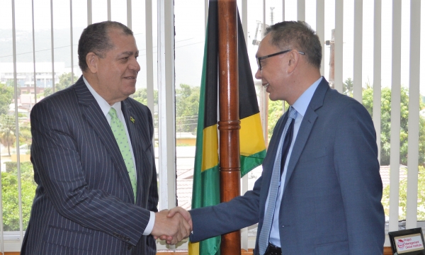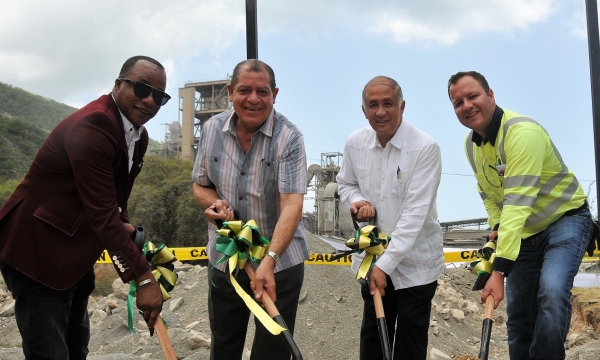 Minister of Industry, Commerce, Agriculture and Fisheries, Hon. Audley Shaw (2nd left), along with (from left) Trade Unionist, National Workers Union, Granville Valentine; Chairman, Carib Cement, Paris Lyew-Ayee; and General Manager, Carib Cement, Peter Donkersloot, break ground for the Carib Cement Company’s new Administration Building in Rockfort, Kingston, on Friday, July 13, 2018. The ground breaking ceremony showcased the new building location which replaces a previous one that was destroyed by fire in January 2017. The new 1050 sq. m building will cost more than US$2M and will house...
