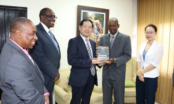 As Jamaica prepares to host the International Bamboo Symposium Minister without Portfolio in the Ministry of Industry, Commerce, Agriculture and Fisheries, Hon J.C. Hutchinson, today welcomed Prof. Lu Wenming, Deputy Director General of the International Bamboo and Rattan Organisation in China, and his delegation to the symposium to be held at the Jamaica Conference Centre in Kingston, starting November 27.