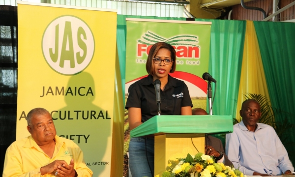 Lenworth Fulton (2nd left), President of the Jamaica Agricultural Society (JAS), welcomes Champion Farmer 2018 Martin Zsifkovics to the launch of National Farmers’ Month, held at the JAS headquarters in downtown Kingston on April 3, 2019. Others from left are Hedda Pitter, Business Development Manager, Newport-Fersan, and Peter Thompson, Chief Executive Officer, Rural Agricultural Development Authority. This year is the 36th anniversary of Farmers Month, held annually to celebrate the work of Jamaican farmers.