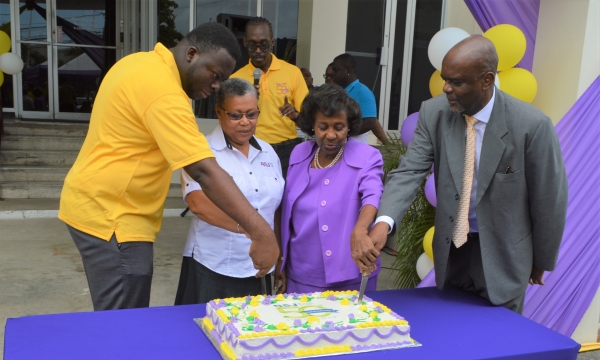 Executive Director, Bureau of Standards Jamaica (BSJ), Hopeton Heron (right), along with (from left) Standard and Certification Officer, BSJ, Kemar Bundy;retiree of the BSJ, Beverley Miller; and retiree, BSJ/Jamaica National Agency for Accreditation, Marguerite Domville, cut the cake to celebrate BSJ’s 50th Anniversary, at its Winchester Road offices in Kingston on Monday, July 15, 2019. The BSJ team was joined by representatives of the Ministry and its agencies, stakeholders, retirees, clients, friends and well-wishers at the ceremony. The anniversary celebrations will be used as an...