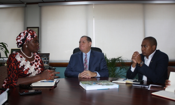 Una May Gordon, Principal Director in the Climate Change Division of the Ministry of Economic Growth and Job Creation speaking with (from left) Winston Shaw, Senior Director, Peter Thompson, Chief Executive Officer, both of the Rural Agricultural Development Authority, and Dr. Roy McNeil, Chief Technical Director, Ministry of Industry, Commerce, Agriculture and Fisheries, at the Accelerating the Adoption of Climate-Smart Agriculture in Jamaica Validation Workshop at the Spanish Court Hotel in New Kingston on July 30. Under the theme ‘Promoting Climate Finance to Support Agriculture...