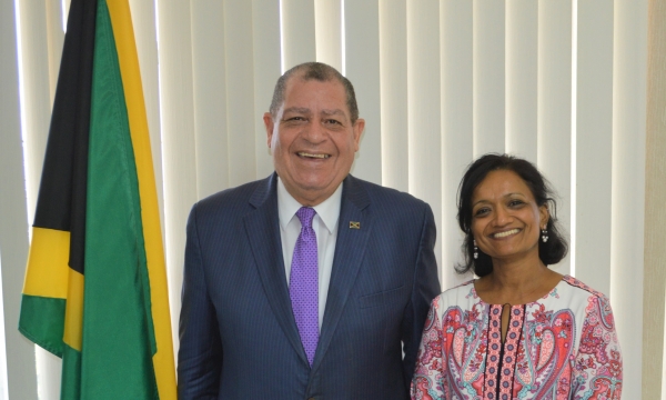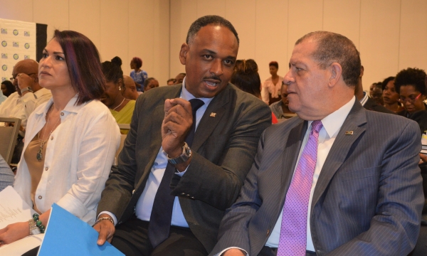 Minister of Industry, Commerce, Agriculture and Fisheries, Hon. Audley Shaw (2nd right), in discussion with (from left) Social Services Manager, Jamaica Social Investment Fund (JSIF), Gresford, Bennett; Managing Director, JSIF, Omar Sweeney; and Chairman, CAC 2000 Foundation, Steven Marston, at a graduation ceremony, at the AC Hotel Marriott, Lady Musgrave Road, Kingston on Thursday, September 12, 2019. The graduation ceremony, which marked the completion of the Alternative Livelihood Skills Training Programme, was organised by JSIF in collaboration with the CAC 2000 Foundation. Under the...