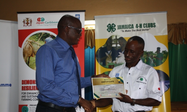 Industry, Commerce, Agriculture and Fisheries Minister, Hon. Audley Shaw (third left), looks on as Food and Agriculture Organisation of the United Nations Representative to Jamaica, Dr. Crispim Moreira (right), plants a lychee tree at the Christiana High School in Manchester on October 11, at the World Food Day National Ceremony and Exhibition. From left are Chairman of the school’s Board, Dr. Hansel Gillman, Jamaica Agricultural Society (JAS) President, Lenworth Fulton, Custos Rotulorum for the parish of Manchester, Garfield Green, and Councillor of the Mandeville Division, Jones Oliphant...
