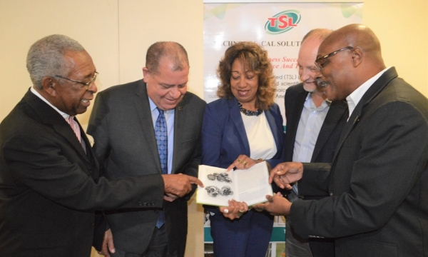 Minister of Industry, Commerce, Agriculture and Fisheries, Hon. Audley Shaw (2nd left), along with (from left) Acting Board Chairman, Technological Solutions Limited, Earl Patrick; President of JAMPRO, Diane Edwards; Senior Representative/Trainer, Safe Quality Food Institute, Frank Schreurs, at the World Standards Day (WSD) Reception, hosted by Technological Solutions Limited at the Courtleigh Hotel & Suites, New Kingston on Monday, October 14, 2019. The reception was held in recognition of WSD, celebrated on October 14 each year. TSL provides solution-oriented technical assistance to...