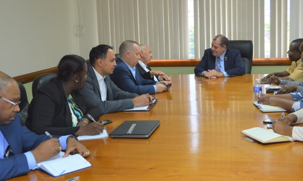 Minister of Industry, Commerce, Agriculture and Fisheries, Hon. Audley Shaw (centre), along with Ministry officials and the Cannabis Licensing Authority team meet with Ambassador of the United States, H.E. Donald R. Tapia and his team, during a courtesy call at the Ministry’s New Kingston offices on Wednesday, October 30, 2019. Ambassador Tapia and his team met with Minister Shaw and other Ministry representatives to discuss trade relations between the two countries, in particular the importation of pork from the US; Jamaica’s cannabis industry; Intellectual Property; mutual benefits of...