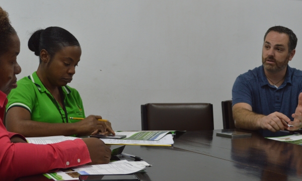Chief Technical Director in the Ministry of Industry, Commerce, Agriculture and Fisheries, Monique Gibbs (second left), pays keen attention to information on the Frosty Pod Rot of Cocoa Disease provided by Senior Plant Protection Officer, Patrice Pitter (left), while on a tour of the Bodles Research Station in Old Harbour, St. Catherine on November 15. Others from third right are Owner and President of Essential Energy Solutions, Dan Stachofsky, Organic Agriculture Consultant with Essential Energy, Markus Braun, and Principal Research Director in the Ministry of Industry, Commerce,...