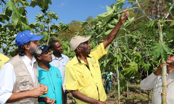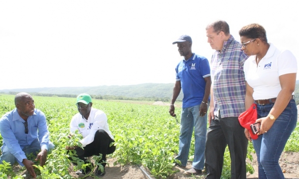 Hon J.C. Hutchinson (2nd left), Minister without Portfolio in the Ministry of Industry, Commerce, Agriculture and Fisheries, discusses production of broccoli under cultivation at the Holland Agro-Economic Zone in St. Elizabeth on February 7, 2020 with (from left) farmer Steve Neish, Dr Crispim Moreira, Food and Agriculture Organization Representative in Jamaica, The Bahamas and Belize, and Peter Thompson, Chief Executive Officer, Rural Agricultural Development Authority. The 2,400-acre property, former sugar cane lands, has been leased by Holland Producers Limited. Currently, 65 small...