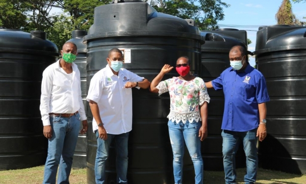 Minister of Agriculture and Fisheries, Hon. Floyd Green (second left), along with farmer from New Works, Westmoreland, Pamela Robinson (second right), at the handover of water tanks at the Rural Agricultural Development Authority (RADA) Parish Office in Llandilo, Westmoreland, on October 8. Others from left are Central Westmoreland Member of Parliament, George Wright, and RADA Chief Executive Officer, Peter Thompson. Five hundred tanks are being distributed islandwide under the Ministry’s Production Incentive Programme to alleviate the impact of drought. To date, a little over 200 tanks...