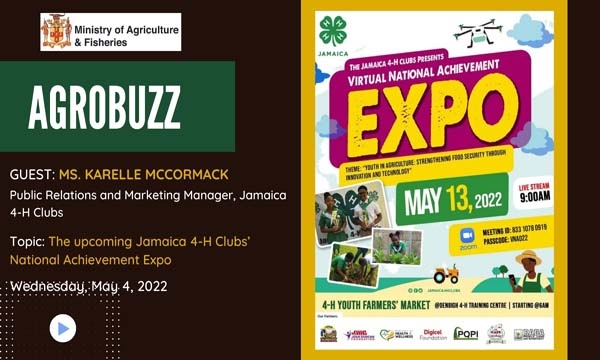 On this week's episode of AgroBuzz, Ms. Karelle McCormack, Public Relations and Marketing Manager, Jamaica 4-H Clubs discussed the upcoming Jamaica 4-H Clubs’ National Achievement Expo. Learn more about this event at https://www.youtube.com/watch?v=VAa6oEQpseY&t=8s