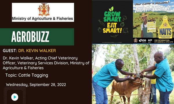In today's Agrobuzz, the Veterinary Services Division of the Ministry of Agriculture & Fisheries is encouraging farmers to tag their animals under the National Animal Identification & Traceability System (NAITS) being led by the Veterinary Services Division of the Ministry of Agriculture & Fisheries. Tagging of animals benefits farmers as well as contribute to Jamaica's food safety. Click here to listen more as Dr. Kevin Walker shares why it is important for farmers to tag their animals.