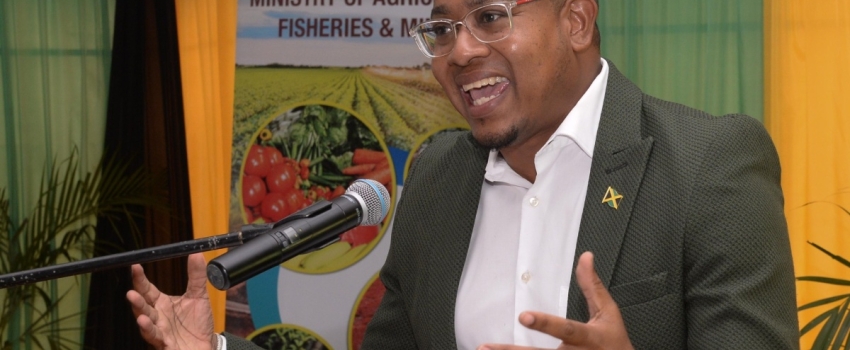 Minister of Agriculture, Fisheries and Mining, Hon. Floyd Green addresses the launch of the Rehabilitation of Research Centres Project 2, which was launched on June 13 at the Bodles Research Centre in St. Catherine.