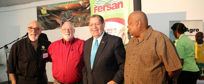 Hon Audley Shaw (3rd left), Minister of Industry, Commerce, Agriculture and Fisheries, shares a light moment with (from left) Allan Rickards, Chairman of the All-Island Cane Farmers’ Association, Phillip Henriques, Chairman of the Sugar Industry Authority, and Lenworth Fulton, President of the Jamaica Agricultural Society. The occasion was the 69th Annual General Meeting of the All-Island Jamaica Cane Farmers’ Association, held at the Spanish Court Hotel in New Kingston on November 14, 2018.