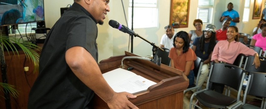 Minister of Agriculture, Fisheries and Mining, Hon. Floyd Green, addresses a sustainable farming symposium hosted by Isratech Jamaica Limited, at the entity’s headquarters in Kendal, Manchester, on Wednesday (June 25).
