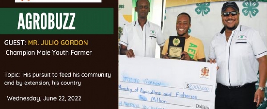 On this week's episode of AgroBuzz, Champion Male Youth Farmer Mr. Julio Gordon spoke about his pursuit to feed his community and by extension, his country. Have a listen HERE.