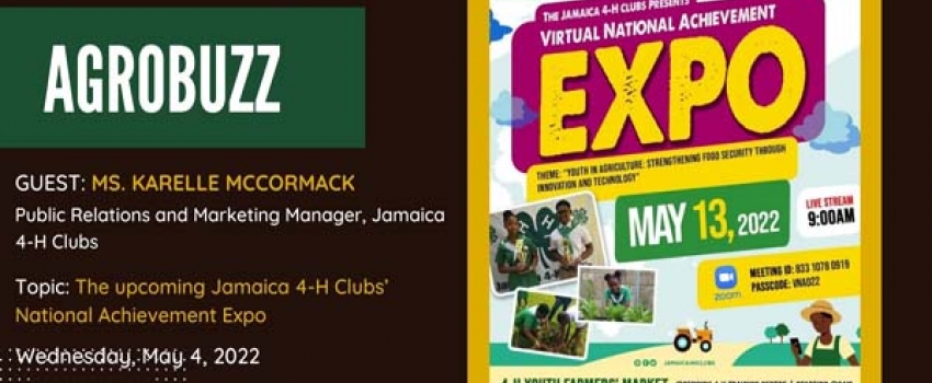 On this week's episode of AgroBuzz, Ms. Karelle McCormack, Public Relations and Marketing Manager, Jamaica 4-H Clubs discussed the upcoming Jamaica 4-H Clubs’ National Achievement Expo. Learn more about this event at https://www.youtube.com/watch?v=VAa6oEQpseY&t=8s