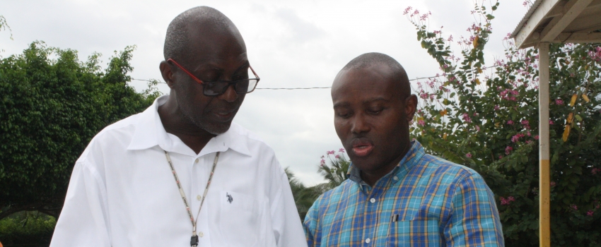 Interim Chief Executive Officer of the National Fisheries Authority, Courtney Cole (right), discuss the programme of the 21st annual general meeting of the Jamaica Citrus Protection Agency with Plant Quarantine Officer in the Ministry of Industry Commerce, Agriculture and Fisheries, Alfred Barrett, at the Bybrook Sporting Facility in Bog Walk, St. Catherine, on February 5.