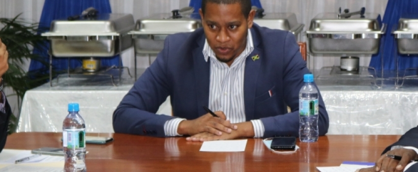 Minister of Agriculture and Fisheries, Hon. Floyd Green (centre), addresses the board of the Agro-Investment Corporation during a meeting at the agency’s Spanish Town Road offices in Kingston on December 9.