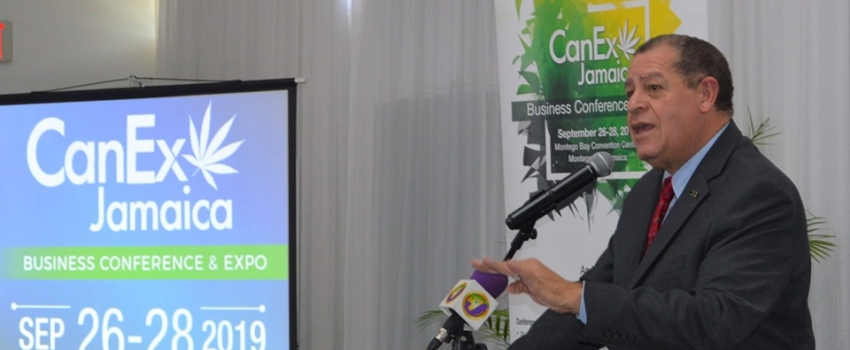 Minister of Industry, Commerce, Agriculture and Fisheries, Hon. Audley Shaw, speaking at the media launch of the CanEx Jamaica Business Conference and Expo at the Spanish Court Hotel, Worthington Avenue, New Kingston on Wednesday, September 4, 2019. The CanEx Jamaica Business Conference and Expo will take place September 26-28 and is regarded as the preeminent cannabis conference in the Caribbean and Latin America. The event will feature advanced content on the regulatory legal investment and global medicinal landscape from experts from over 30 countries.