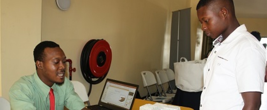 Student, Faculty of Engineering and Computing, UTech, Carlos Bernard (right), explains the uses of Hempcrete blocks to one of the participants, during a tour of exhibits at the 3rd staging of the Jamaican Medical Cannabis Integration Symposium (JAMECANN 2018), hosted by the College of Health Sciences, UTech, Kingston, on Thursday, July 5, 2018. The objective of the two-day symposium (July 5 and 6) is to showcase the advances that have been made in the Jamaican and International medical cannabis sector, and to provide opportunities for building research networks.