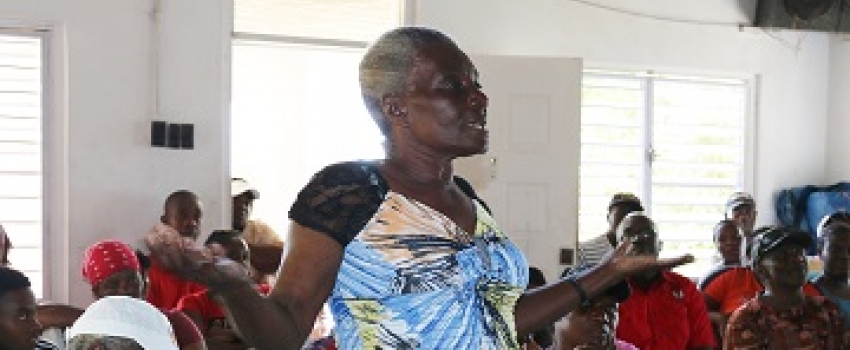 Coffee farmer, Faylin Greenleaf, speaking at the Agricultural Development Stakeholders’ Forum held at the Church of God of Prophecy in Richmond Gap, St. Thomas, on August 21. Coffee is one of several crops produced by the farmers on approximately 285 hectares in the Cedar Valley Extension Area in St. Thomas.