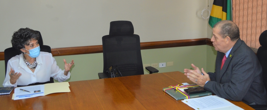 The Minister exchanged ideas on the matter with Colombian Ambassador to Jamaica, Her Excellency Diana Aguilar Pulido, during a courtesy call at his Ministry’s New Kingston Offices on Wednesday, July 29, 2020.