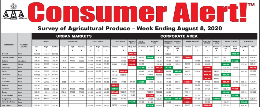 Survey of Agricultural Produce - Week Ending August 8, 2020.