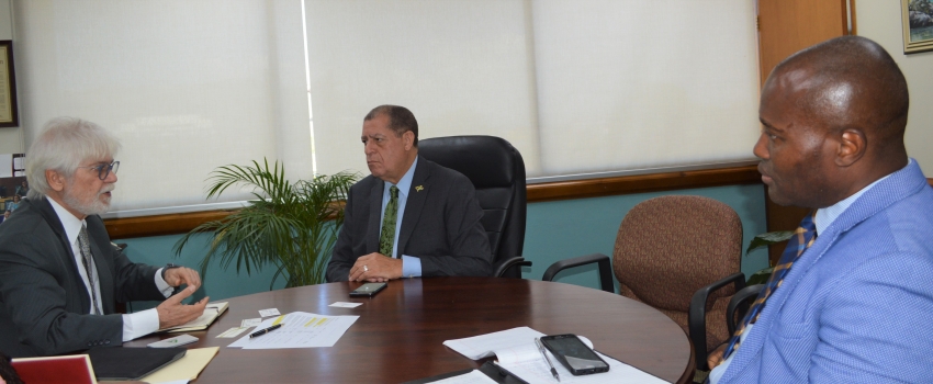 Minister of Industry, Commerce, Agriculture and Fisheries, Hon. Audley Shaw (centre), in discussion with (from left) Ambassador of Brazil, H.E. Carlos Alberto Michaelsen den Hartog; and Chief Technical Director for Special Projects at the Ministry, Courtney Cole, during a courtesy call at the Ministry’s New Kingston offices on Wednesday, May 1, 2019. Minister Shaw and Ambassador den Hartog discussed opportunities for cooperation between Jamaica and Brazil.