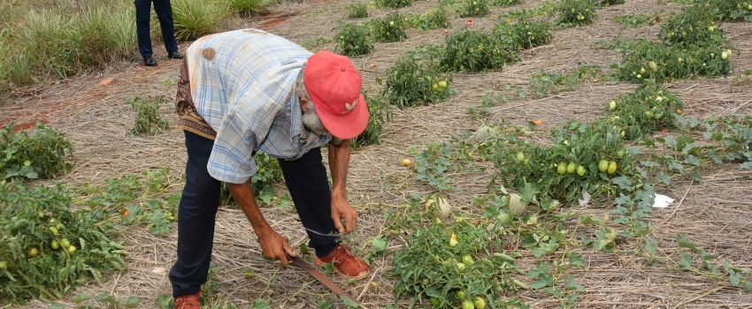 A farmer from Flagaman, St. Elizabeth, tends to his field of tomato and cantaloupe crops. Farms in the area are flourishing again following last year's bushfire, which resulted in millions of dollars in losses.