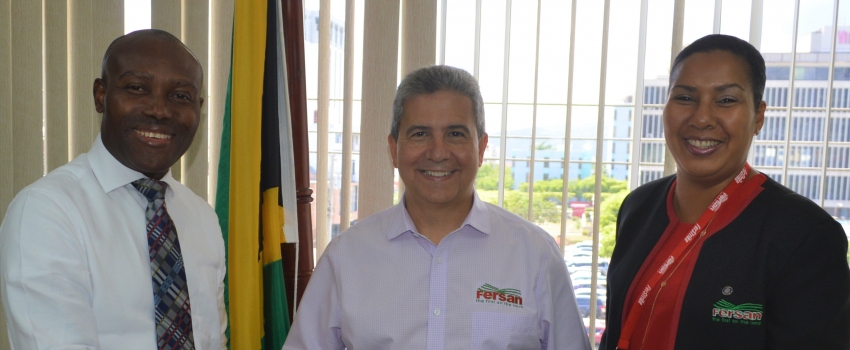 Chief Technical Director for Special Projects in the Ministry of Industry, Commerce, Agriculture and Fisheries, Courtney Cole (left), along with Managing Director, Dennis Valdez; and Business Development Manager, Hedda Rose Pitter, Newport Fersan, during a courtesy call at the Ministry’s New Kingston offices on Thursday, May 2, 2019. The meeting discussed developments in the agricultural sector, focusing on crops such as pineapple, hot peppers, onion, Irish potatoes, ginger and yam as well as opportunities for further cooperation between the Ministry and Newport Fersan.