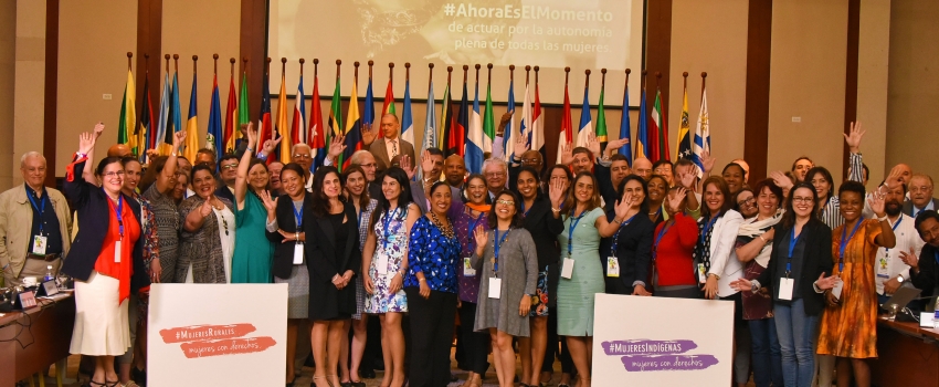 Delegates at the FAO 35th Latin America and Caribbean Regional Conference on March 8, 2018, celebrate International Women’s Day.