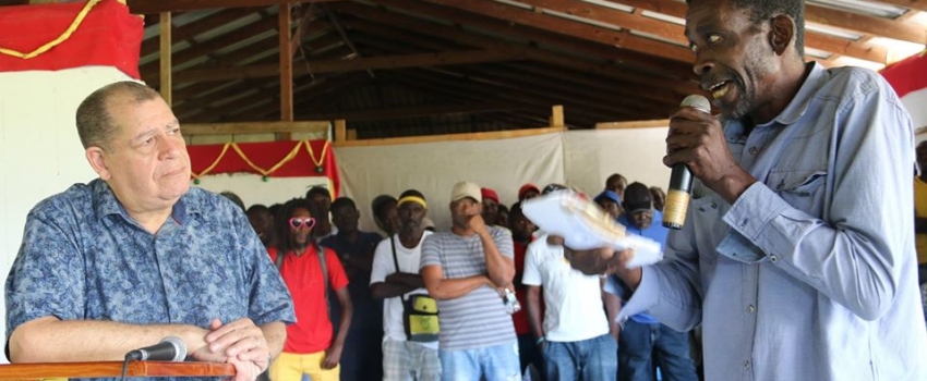 Home | Former Sugar Cane Worker Joseph Carr speaking during a meeting with the Hon. Audley Shaw