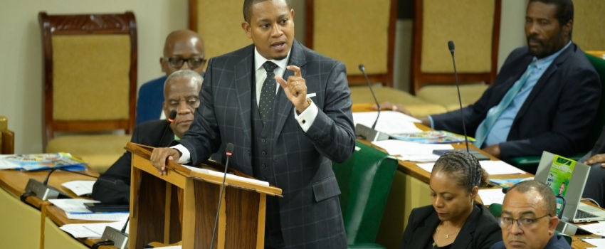 Minister of Agriculture, Fisheries and Mining, Hon. Floyd Green emphasizing a point while making his contribution to the 2024/25 Sectoral Debate in the House of Representatives, recently.