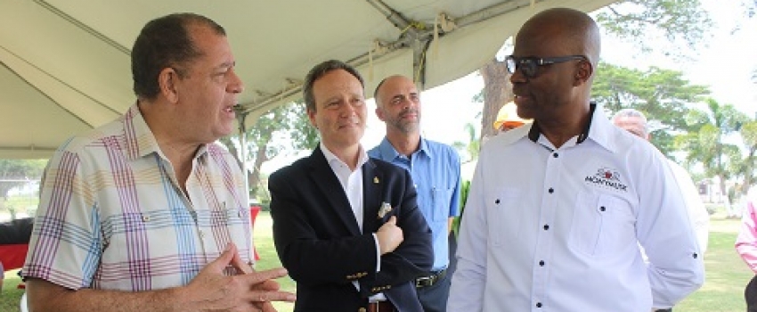 Hon Audley Shaw (left), Minister of Industry, Commerce, Agriculture and Fisheries, converses with Winston Harrison (right), Chief Executive Officer of National Rums of Jamaica Limited, during a visit to the Clarendon Distillers Limited Factory in Lionel Town, Clarendon, on June 14. At centre is Alexandre Gabriel, Chairman of West Indies Rum Distillers, one-third owner of National Rums of Jamaica Limited. The visit was geared towards Minister Shaw having a better understanding of the needs of the rum manufacturers and to create linkages that will assist with marketing and selling their products in the regional and international markets.