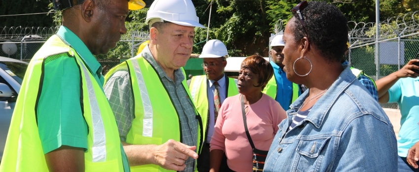 Home | Hon. Audley Shaw speaking with farmers at the official commissioning of the NIC's Bengal Pump Station in Trelawny