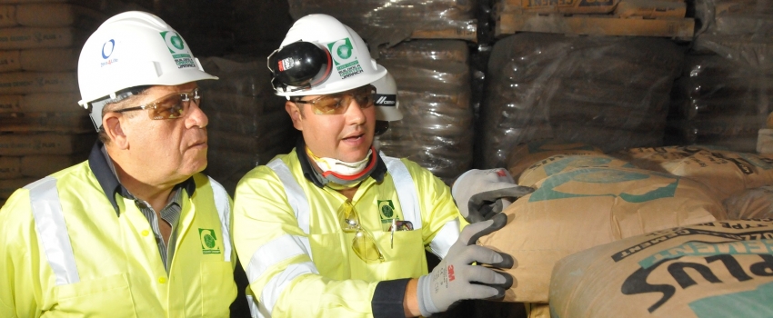 Minister of Industry, Commerce, Agriculture and Fisheries, Hon. Audley Shaw (left), views parcels of cement being shown to him by General Manager, Caribbean Cement Company, Peter Donkersloot, during a tour of the company’s plant on Friday, July 13, 2018. Occasion was a ground breaking ceremony of the company’s new administration building and tour. The new 1050 sq. m building will cost more than US$2M and will house more than 60 employees.