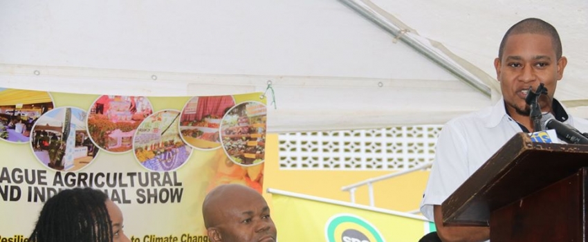 Minister of State in the Ministry of Industry, Commerce, Agriculture and Fisheries, Hon Floyd Green, speaking at the launch of the 65th staging of the Hague Agricultural and Industrial Show at the showground on January 22. Under the theme 'Agricultural Resilience and Adaptation to Climate Change', the show will be held February 25-26, 2020 at the Hague Showground in Trelawny. Others from left are Tova Hamilton, and Deputy Mayor of Falmouth, Councillor Donovan White.