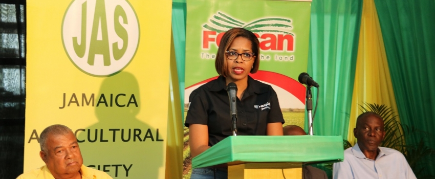 Simone Mahabeer, Marketing and Communications Manager of H&L Agro, endorses National Farmers’ Month at its launch held at the Jamaica Agricultural Society’s (JAS) headquarters in downtown Kingston on April 3, 2019. At left is Lenworth Fulton, President, and Christopher Emanuel, Chief Executive Officer, both of the JAS. Farmers’ Month activities will include a lecture focusing on the impact of climate change at the University of Technology , Farmers’ Training and Recognition Forum across the island, H&L Agro Farmers’ Special, offering a 3-15% discount at all locations and a Newport-Fersan Sale Day. This year is the 36th anniversary of Farmers Month, held annually to celebrate the work of Jamaican farmers.