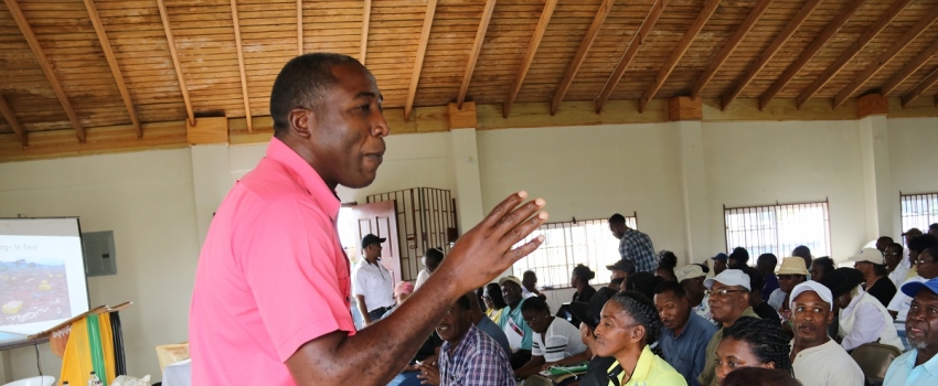 Recorgo Holt, Marketing Manager at the Rural Agricultural Development Authority, addressing farmers on marketing requirements at the National Irish Potato Sensitization Meeting, held in Christiana, Manchester, on October 4, 2018. The target for the 2018-2019 crop year is for some 1,200 hectares of Irish potatoes to be planted to meet the national demand of 17,000 tonnes.