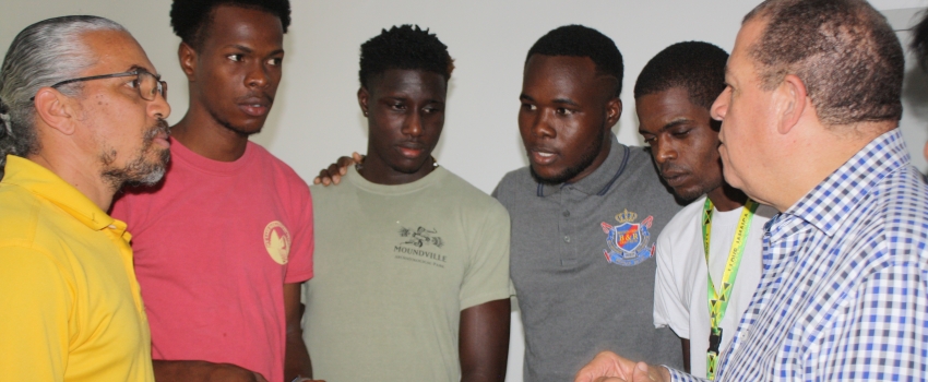 Home | Minister Audley Shaw converses with field rangers at the health screening of the Jamaican Iguana