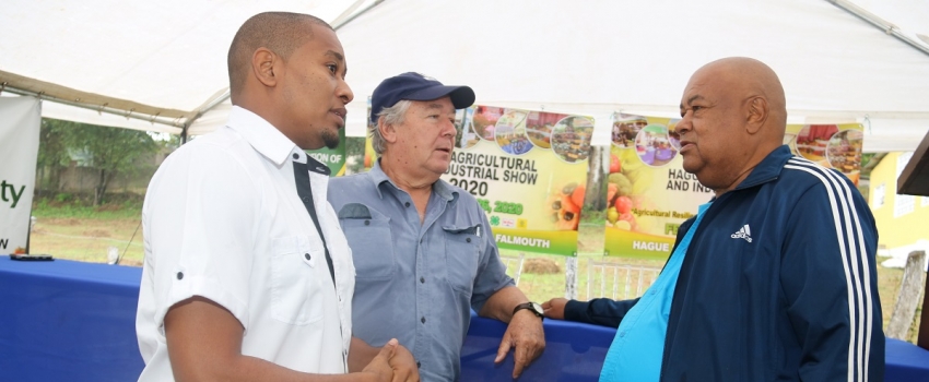 From left, Minister of State in the Ministry of Industry, Commerce, Agriculture and Fisheries, Hon Floyd Green, Hon Harold Muschett, Custos of Trelawny, and Lenworth Fulton, President of the Jamaica Agricultural Society, in dialogue at the launch of the 65th staging of the Hague Agricultural and Industrial Show at the showground on January 22. Under the theme 'Agricultural Resilience and Adaptation to Climate Change', the show will be held February 25-26, 2020 at the Hague Showground in Trelawny.