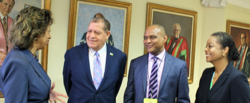 Minister of Industry, Commerce, Agriculture and Fisheries, Hon. Audley Shaw (2nd left), in dialogue with (from left) President, Jamaica Promotions Corporation (JAMPRO), Diane Edwards; Secretary General, Jamaica International Arbitration Centre (JAIAC), Dr. Christopher Malcolm; and Attorney General for Jamaica, Hon. Marlene Malahoo Forte; at the opening ceremony of the Arbitration Week 2018 Conference, at the UWI Regional Headquarters, Kingston, on June 28. Arbitration Week 2018 is part of an ongoing effort to support Jamaica’s development as an international arbitration centre, in the context of the country being an international business services centre. The conference, hosted by the JAIAC, will run from June 24-30 and will include a number of round-table/panel discussions on arbitration.