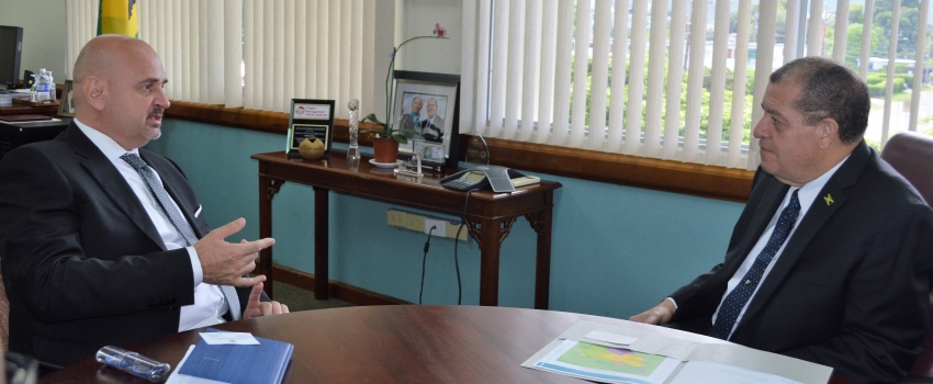 Minister of Industry, Commerce, Agriculture and Fisheries, Hon. Audley Shaw (right), in discussion with Ambassador of Serbia, H.E. Danilo Pantovic, during a courtesy call at the Ministry’s New Kingston offices, on Wednesday, May 30, 2018. Among the matters discussed were the strengthening of relations between Jamaica and Serbia through the development of new opportunities in the manufacturing, services and agricultural sectors.