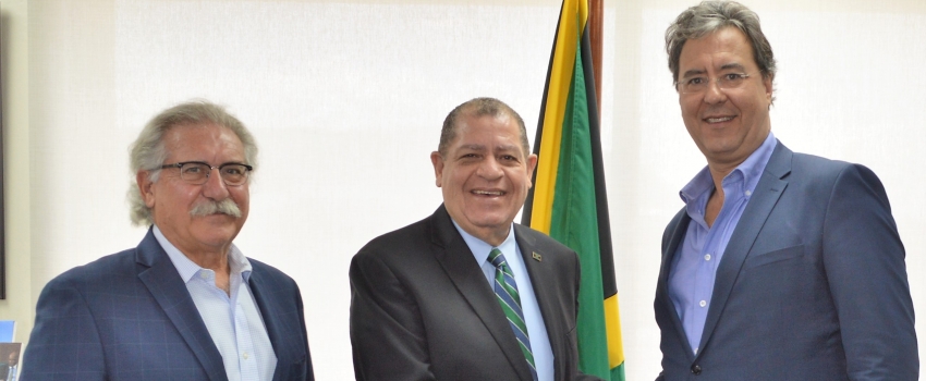 Minister of Industry, Commerce, Agriculture and Fisheries, the Hon. Audley Shaw (centre), along with Executive Director, Canadian Consortium for Investigation of Cannabis, Dwight Moore (right); and Director, International Business Development Caribbean Region, Steve Baker, during a courtesy call at his New Kingston offices on Wednesday, February 20, 2019. Among the matters discussed was the Ministry’s commitment to facilitate further development of the medical marijuana industry in Jamaica.