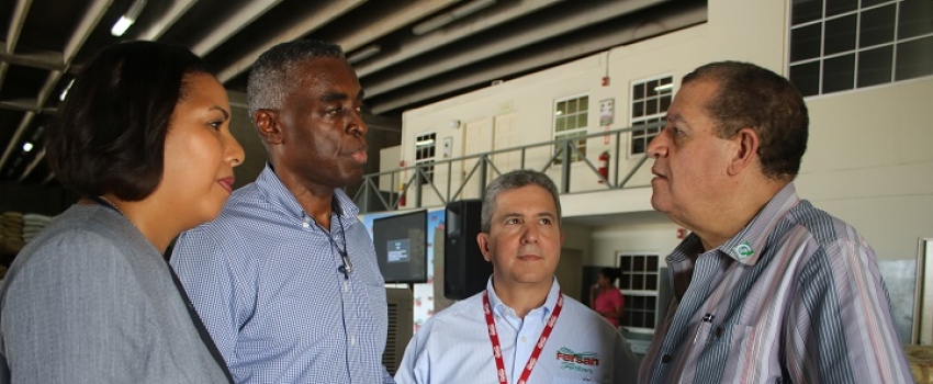 Hon Audley Shaw (right), Minister of Industry, Commerce, Agriculture and Fisheries, in discussion with (from left) Hedda Rose Pitter, Business Development Manager, Newport-Fersan Jamaica (NFJ); Gusland McCook, Acting Director General, Jamaica Agricultural Commodities Regulatory Authority; and Dennis Valdez, Managing Director, NFJ. The occasion was the official handover of Coffee-Lizer fertilizer to coffee farmers at NFJ on July 13 in Kingston.
