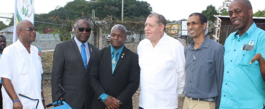 Industry, Commerce, Agriculture and Fisheries Minister, Hon. Audley Shaw (third right), participates in the handover of a hand-held tractor to the Christiana High School in Manchester on October 11 at the World Food Day National Ceremony and Exhibition. Others participating from left are Chairman of the school’s Board, Dr. Hansel Gillman; Custos Rotulorum for the parish of Manchester, Garfield Green, Principal of the school; Leecent Wallace, Rural Agricultural Development Authority (RADA) Chairman, Nigel Myrie, and RADA Manchester Parish Board chairman, Lennox Powell.