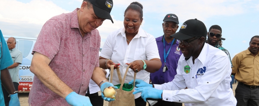 Home | Minister Shaw reaps onion during a tour of the Dencon Foods JA Ltd Farm