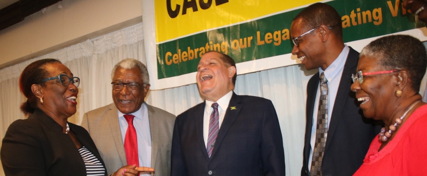 Home | Minister Shaw shares a light moment with participants in the CASE Alumni Association’s Panel Discussion