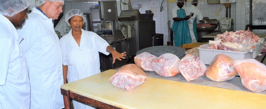 and Manager, Arosa Limited, Louise Jackson, during a tour of the company’s meat processing facility in Drax Hall, St. Ann's Bay, on Thursday, August 30, 2018.